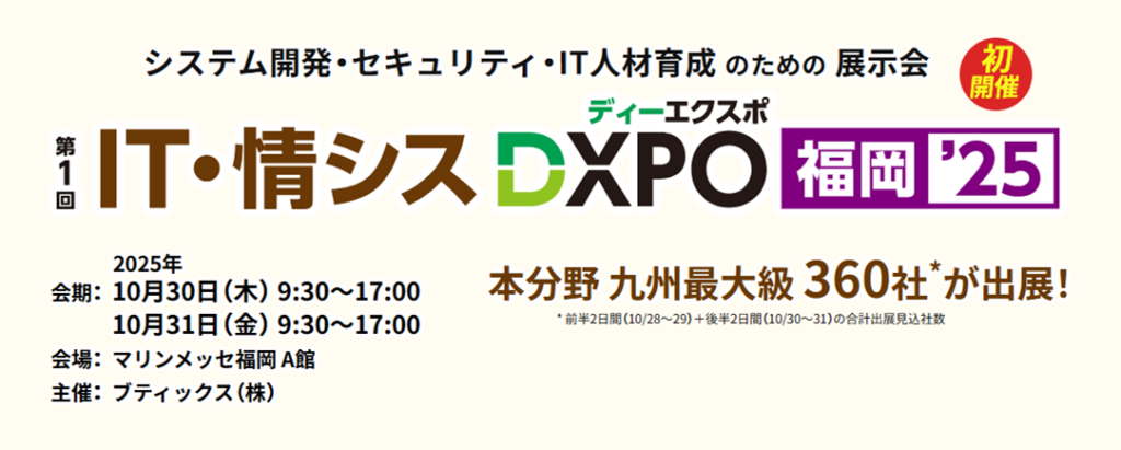 2025年9月9日イベント 「DX・ITフェア中部2025」に出展します2024年10月17日イベント 「Japan IT Week 秋」に出展いたします2024年6月11日セミナー 【6/22(土)セミナー】WordPressセキュリティ対策について WACA✗JWA合同セミナー にて登壇します2024年3月15日イベント 「第33回 Japan IT Week 春」に出展いたします2023年11月15日イベント 産業交流展2023に出展します2023年10月30日イベント 第24回コールセンター/CRM デモ&コンファレンス2023㏌東京に出展します2023年10月13日イベント 「第14回 Japan IT Week 秋」に出展いたします2023年8月18日イベント 【セミナー登壇のお知らせ】くまもとDXコンソーシアム主催 第2回DX実践セミナー ~DXで社内改革! データ活用の進め方~ 投稿ナビゲーション 1 2 … 5 次へ